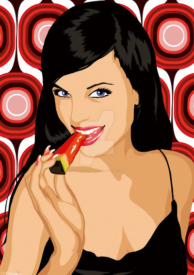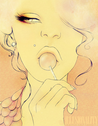 i like the way her eyeshadow turned out... and the circles on her cheek. try makin her licking a creamsicle.