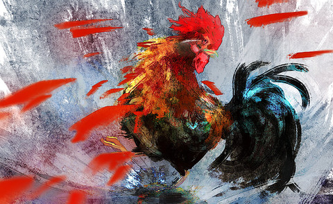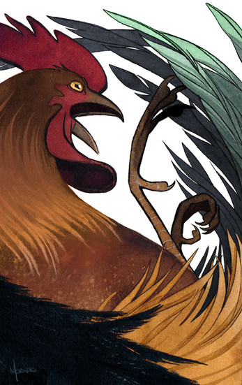awesome dude, the rooster's style reminds me a bit of *Cloxboy i think thats definatly a compliment. the background is really cool. did you draw that all by hand with some copy/pasting or is it a texture or stock or something?