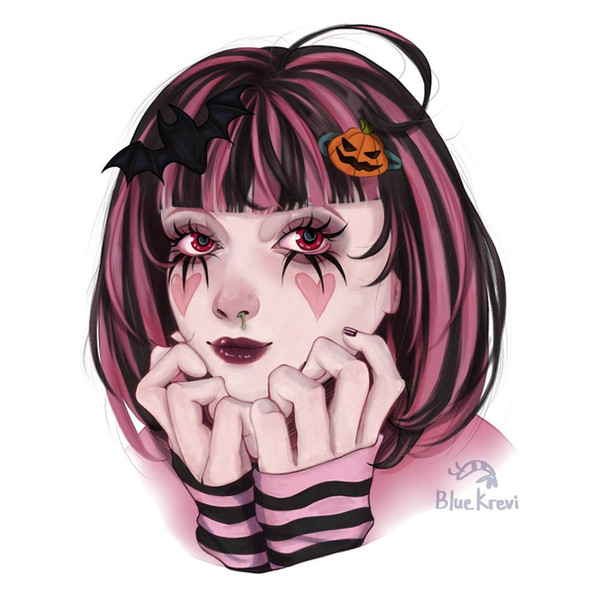 #commission #creepy #cute #demon #digital #drawing #girl #goth #monster #painting #pastel #portrait