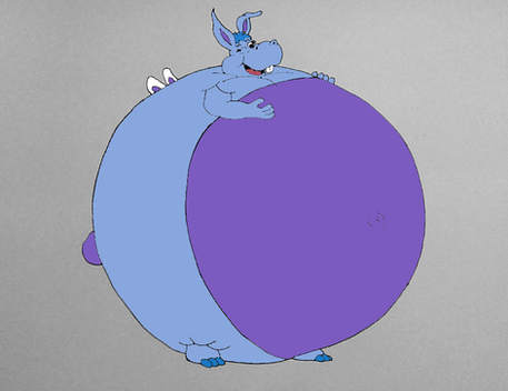 Roger Rabbit was chewing a gum turning blue and inflates into a blueberry rabbitJessica, What's happening to me!