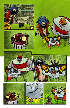 I love your fun characters. XD I love how none of these guys feel throwaway, even if technically, most of them are. Their names, their very different, very colorful and unique designs and even their different fighting styles/weapons feel like they all had thought and care put into them. I love how having all of these colorful characters in this fight helps to flesh out the world a lot, too. Not only are they fun in and off themselves, but they give use a LOT of information about the world this comic takes place in, that it has all of these wacky types of characters.