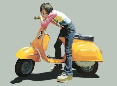 Very nice work! I really like the shading of the picture, especially on the skin. The background idea is also nice and suits the pic. Go L!