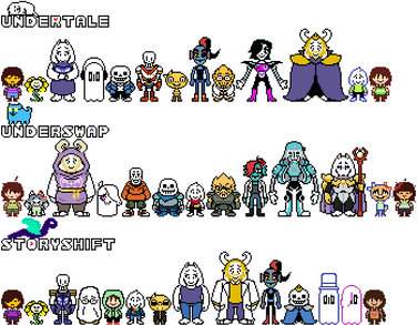 Btw, Mettacrit (that's the name for Storyshift Mettaton) and Napstablook are not children in the AU so they do not wear stripe shirts. Also, Storyshift Chara does not have pockets on their jacket.