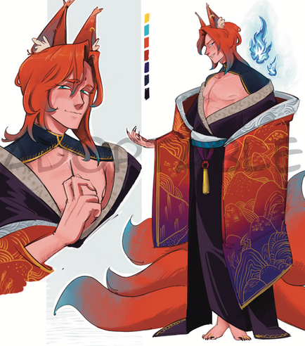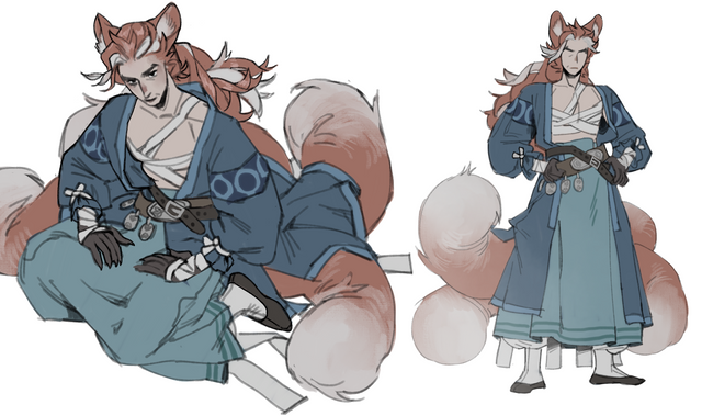 #characterdesign #humanoid #kemonomimi #digitalart #originalcharacter #characterconcept #fox #referencesheet #kumiho #redhair #tails