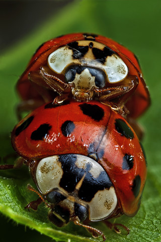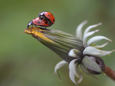 Horny bugs remind me of the kids at my school. . . Frisky whores, they are. Nice picture, though. I like how the focus is on both the flower and the (horny) ladybugs