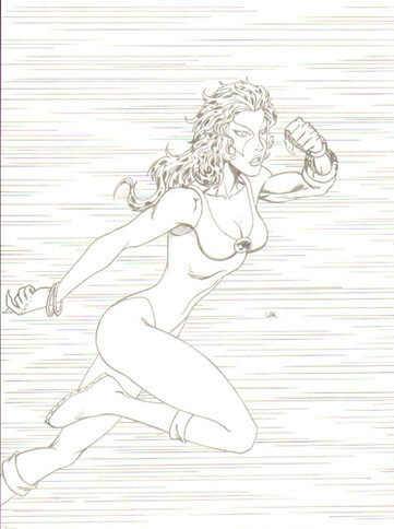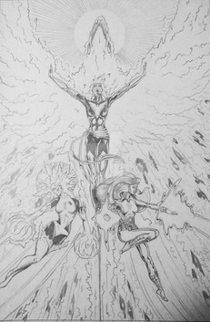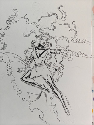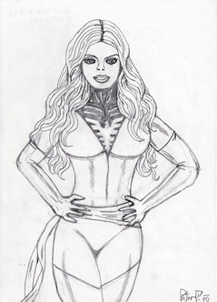I was trying to think of some female character to draw. So I looked through some of my books to see who I felt like drawing. I saw a pic in the Modern Masters #6 which spotlighted Arthur Adams. In the gallery, there was a pic of Phoenix. I never drew her before so I did and this is the result. The background was basically what Art did with his Phoenix pic for the Classic X-Men cover. ( sorry forgot the issue) Her face is a tad-bit long. I think its fixable if I cut her chin abit and turn what I took away into shadow.Coming Soon: