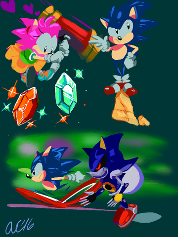 LOL ..I love the last one XD . I know that Sonic x Sally is more canon...but I love SonAmy arts :3Β