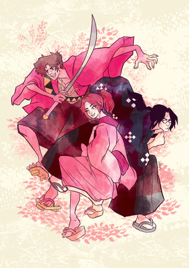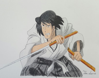 Whenever I see Lupin fanart, a big smile creeps across my face. The sketchy style works so well for Goemon!