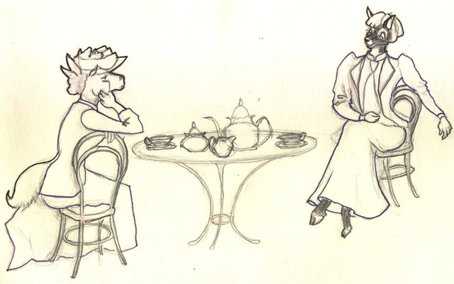 These Alien ladies are have a lovely little Afternoon get together in the gardens!Featured Aliens are: a Wal’vali lady ,a Ka’vali lady ,space ferrets ,a sleepy space raccoon ,a space llama ,a Karii (space deer), and a sneaky sandwich munching swaas