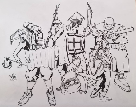 #alien #arrows #artwar #axe #barbarian #camp #campfire #centauress #fantasy #floofy #fluffy #hornedhelmet #horns #hugebreasts #limitedpalette #moon #nighttime #nighttimescene #shadows #warrior #alcoholmarkers #fire