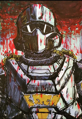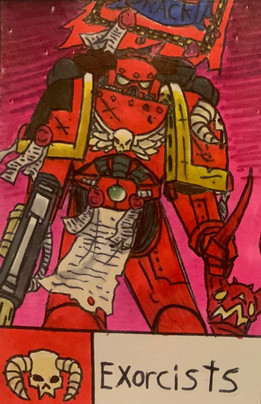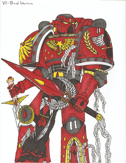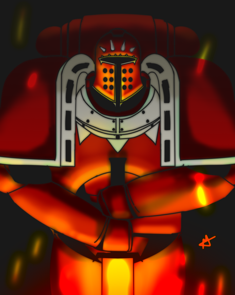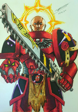 #warhammer40k #traditionalart #battle #powerarmor #astartes #bloodangels #bolter #chainsword #explosion #gem #gemstone #mk7 #spacemarine #mk6 #alcoholmarkers #successorchapter