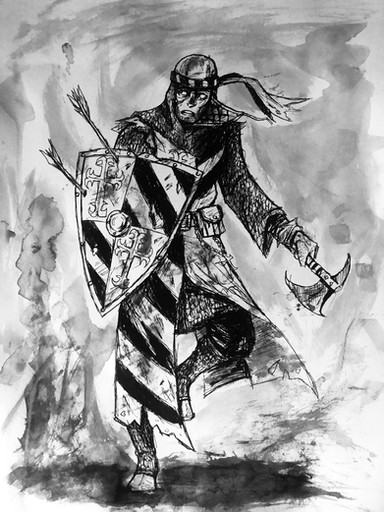 #arrows #axe #forest #goblins #sharpie #shield #warmgrey #chainmail #fantasy #flail #human #merc #mercenary #halloween2023 #october2023