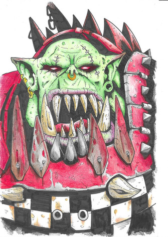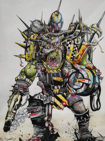 #fanart #warhammer40k #traditionalart #armour #banner #grot #horn #horns #muscular #orc #ork #warhammer40000 #alcoholmarkers #hugemuscles #grechin #warhammercommunity
