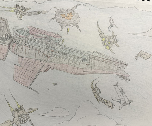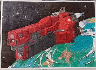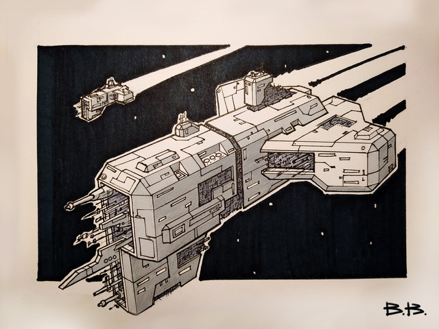 #scifi #spaceship #traditionalart #space #military #starship #fleet #gasgiant #industrial #moon #nebula #orbit #alcoholmarkers