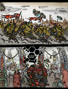 #scifi #cyberpunk #apc #armour #banner #bullets #city #cityscape #industrial #machinegun #megaphone #mercenary #police #rifle #riotshield #smoke #vehicle #alcoholmarkers