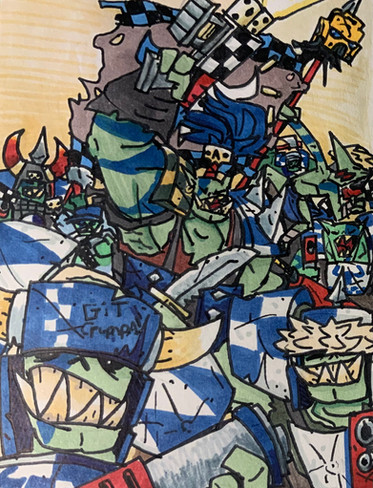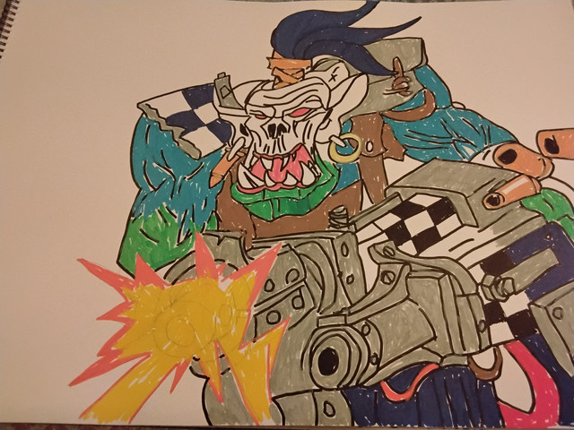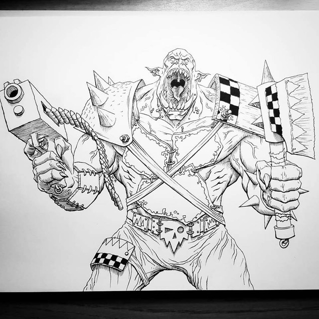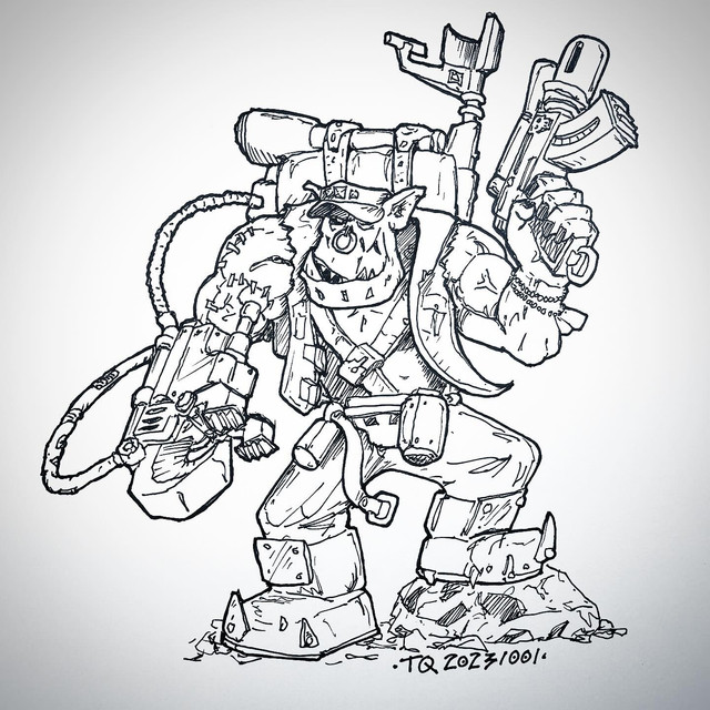 #fanart #characterdesign #orc #warhammer40k #axe #deathskull #gun #imperialguard #ork #rocks #skull #smoke #alcoholmarkers #orctober #orctober2024