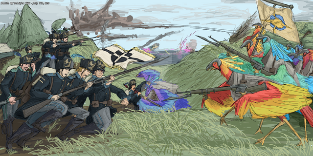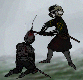 Cyrix, Trünt & Ælüte being ambushed by the forces of the purple Shadow wizard (Also known as the Kingdom of Staldonia)FT:Cyra, Trent, E-lite