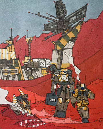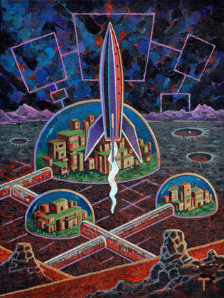#70s #american #checkers #colony #dirt #dirtroad #flag #human #retro #rocks #scifi #ship #spaceport #stars #starship #antenna #exoplanet #megastructure #terraforming #scificonceptart