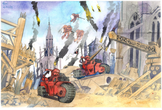 #scifi #traditionalart #space #spaceship #battle #ambush #asteroid #explosion #industrial #spacesuit #starship #alcoholmarkers