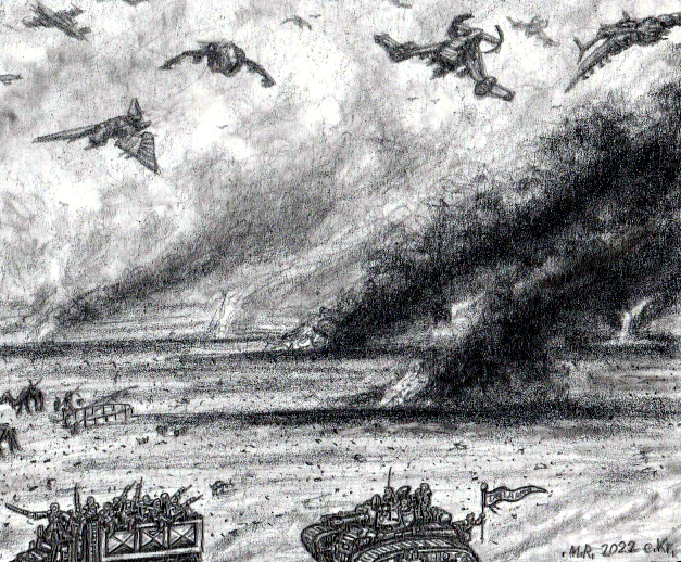#scifi #military #traditionalart #space #battlefield #doodle #flag #machinegun #overcast #rifles #sandbags #spaceship #trench #war #warzone #alcoholmarkers