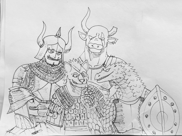 #alien #armour #cloak #female #guard #horns #hugebreasts #loincloth #multiboob #necromancer #skeleton #sketch #threeheaded #undead #multiplebreasts #alcoholmarkers #hugemuscles #hyperbreasts