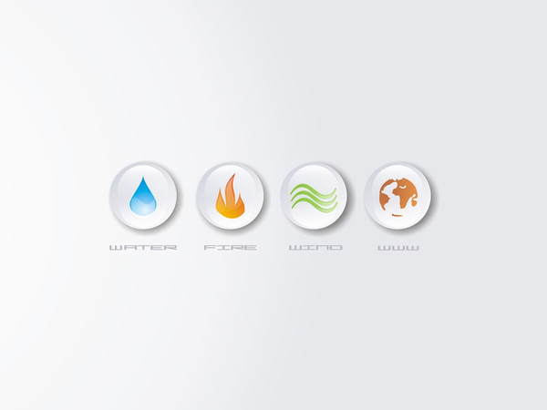 Air is made in AfterFX plus some clouds photos. Earth and metal buttons were made same way as water.