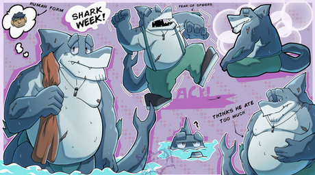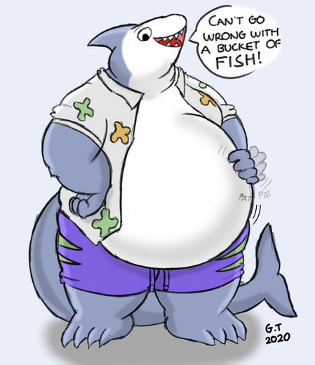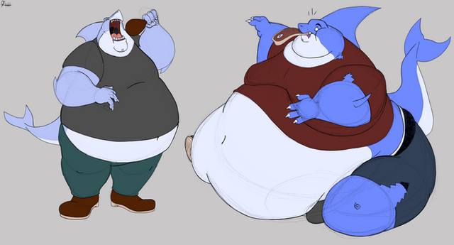 #shark #digitalart #characterdesign #originalcharacter #scalie #anthro #aquatic #bara #belly #charactersheet #clothing #comic #fat #furry #furryanthro #furs #gain #humanoid #jiggly #male #monster #obesity #pudgy #routine #sfw #bellyrubs #roundbelly