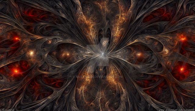 Created with the fractal program Jwildfire (Random Gnarl formula) used the colors of this A.I generated image by Ghost -5th iteration- (I wrote the description of a painting I read about him making in Chatgpt into the prompt) creator.nightcafe.studio/creat… creator.nightcafe.studio/creat… to create the gradient for this fractal (Get bent luddites there is no spoon!). Moonlight Sonata by Beethoven was playing while creating this fractal some techno and trance remixes of the song as well.More to come!