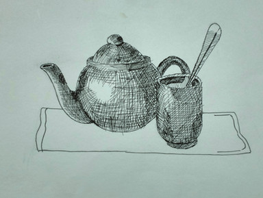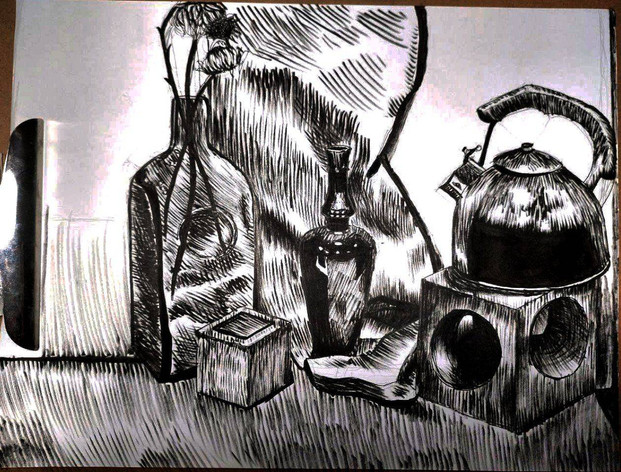 Still life art challenge for school. The challenge is to draw everything in only pen.Related content
