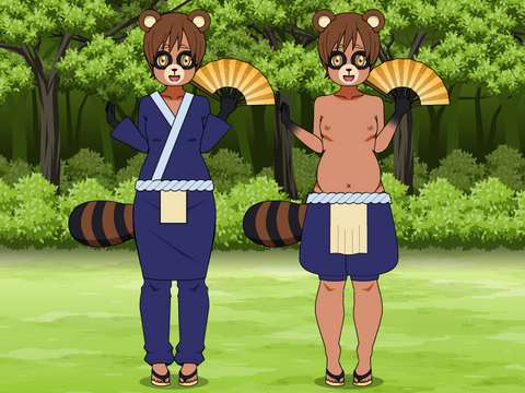 The two types of tanuki in the Western Zone are regular tanuki and the magical Bake-Danuki. Dansuke is part of a legendary bake-danuki clan from the Hinomori Mountains. He is infamous about these parts even amongst his fellow tanuki, for his mischievous and perverted antics. While some of his elders are proud of him, many don't think that he's a "proper" tanuki yet.