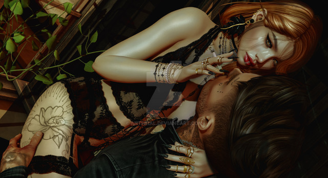 #avatar #bom #couple #digital #digitalart #doll #evox #eyes #eyeshadow #female #forehead #ghoul #glow #lips #love #male #marks #mesh #neck #pale #passion #rings #secondlife #skin #tattoo #vampire #veins #applier #lelutka