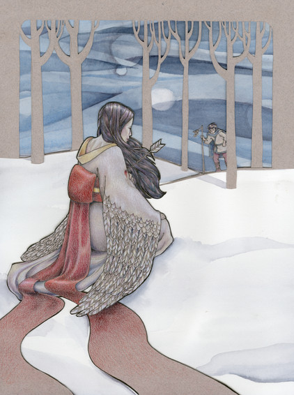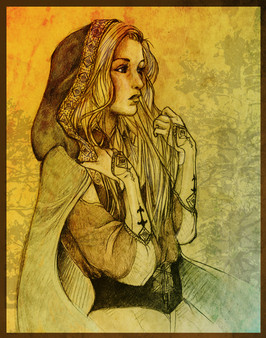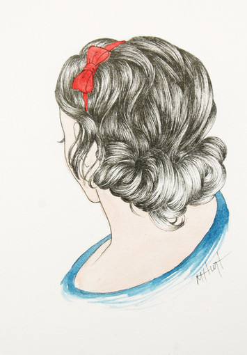 Mixed media drawing on wallpaper. Illustration of Red Riding Hood. I used this as a reference: [link] Hope you like it, I looooved making this one!! I'll be doing some more wallpaper drawings during breakRelated content