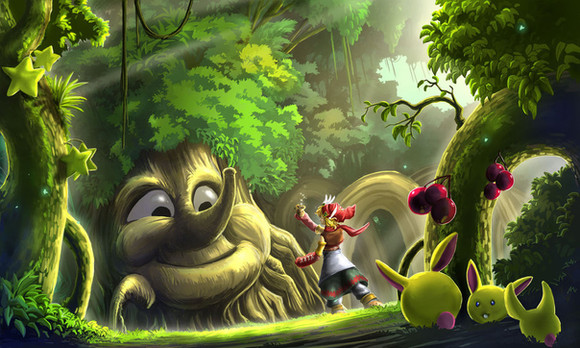 All 4 of your paintings from Secret of Mana looks like illustrations for Ragnarok game. Like this plant in Tropicallo, I may be wrong because I haven't play Ragnarok in years, but there was similar creature. On The Ghost by the Waterfall I think I saw a Porring or it was just a mushroom and this bunnies looks like those from "novice" area around Kafra.