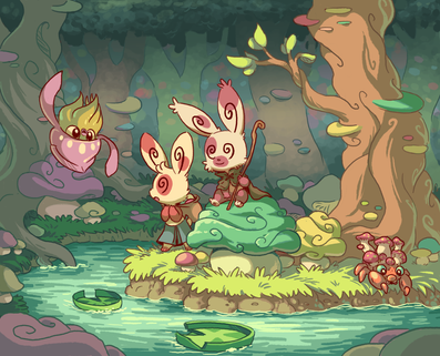 Absolutely gorgeous background and lighting! The Mushboom are kind of creepy-looking with that expression, and the Rabites are just precious! Is that a Candy I see? =3 I can not wait to see more of these interpretations! =3