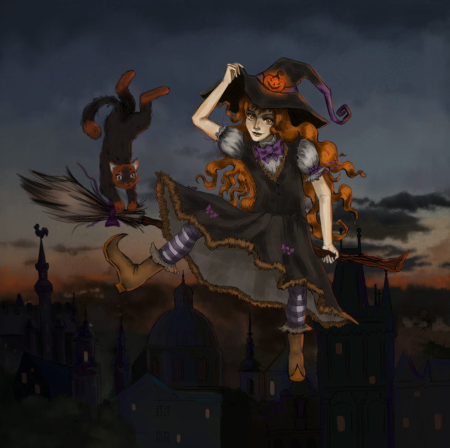 #1st #31st #anime #broom #clumsy #cute #digital #female #first #flight #flying #girl #halloween #manga #media #moon #night #october #spooky #witch #witches #lanalula