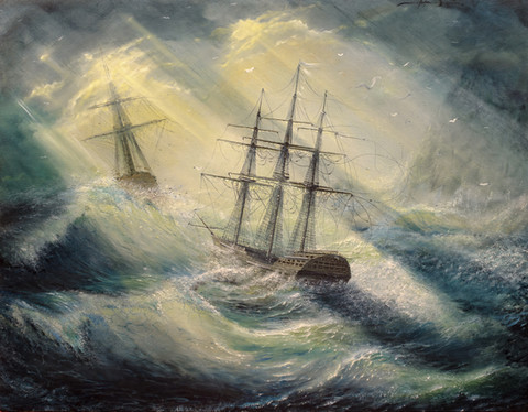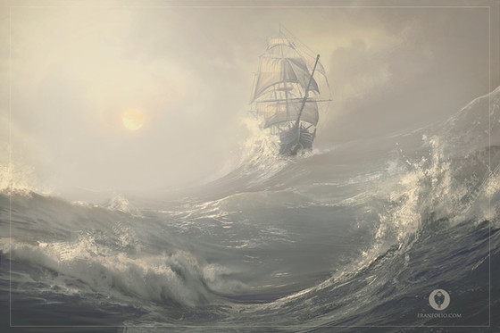 Previous Aivazovsky imitation was so enjoyable to paint, I thought I indulge myself a bit more. So, the next morning I painted this one. As the paint wasn't even dry yet, a friend walks in, sees the painting, and says: I want to buy that. To which I replied: Suits you, sir. The fastest painting ever to sell by me. Also, almost the only one.Related content