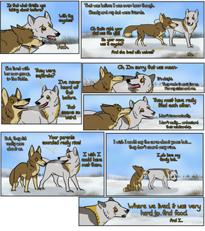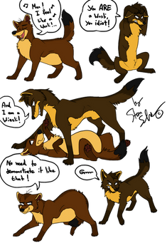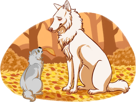oh my god Pigeon, you can't just ask someone why they look different than youSmol explanation, Jake is a wolfdog and Pigeons adoptive big brother. Pigeon is a pure wolf and has no real idea