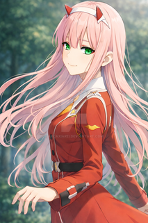 #ai #greeneyes #aiart #redhorns #zerotwo #smuggirl #hornsgirl #darlinginthefranxx #aiartgenerator
