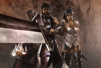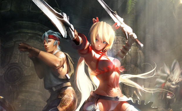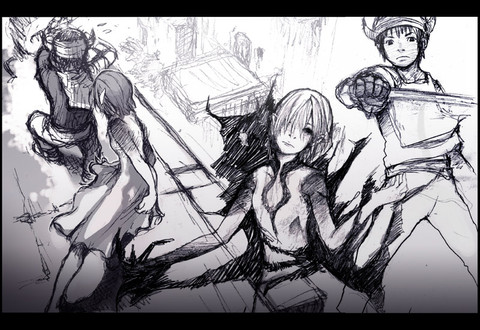I love the almost demonic designs on the red girl, Also there's nothing better than a girl holding a large sword, haha. I love this pic, faved.