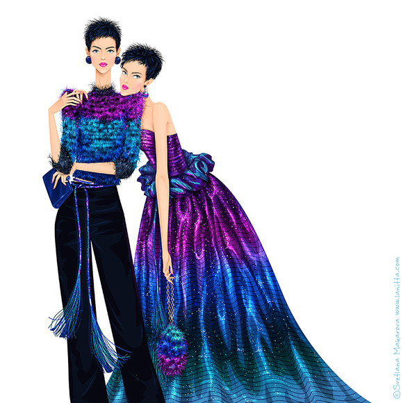 RED Valentino pre-fall 2015 Ready-to-Wear.Done in Adobe Illustrator CS5, using pen tool, blends, transparencies, gradients, brushes and clipping masks.