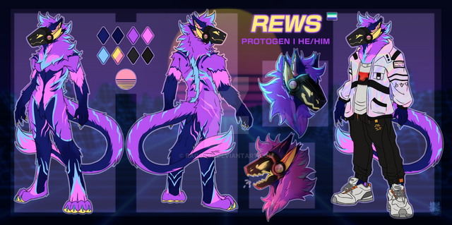 Lanky back at it again with a Protogen design! Meet Retro! My new brightly coloured son!He was originally going to be an adopt but I fell so madly in love with him that I decided to keep him! TwT I know I keep saying this but man I love Protogens so damn much! ❤️❤️❤️❤️