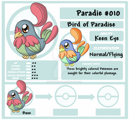 Beautiful colours on this pokemon. Like a peacock except prettier.