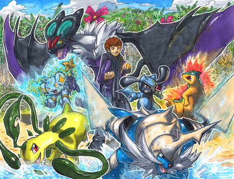This picture is badass!! Luv the way its drawed, the shadings, and the pokemons Lolz all of my fav pokemons!!