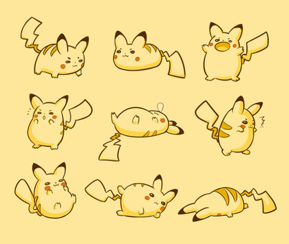 (although, there's one thing I'm a little confused about; I can't really see how leaping-towards-viewer Pikachu "connects", in terms of motion, to rolling-over-backwards Pikachu on the lower left corner? This doesn't distract from the adorableness of this picture, though.)