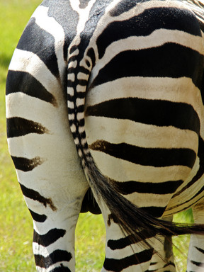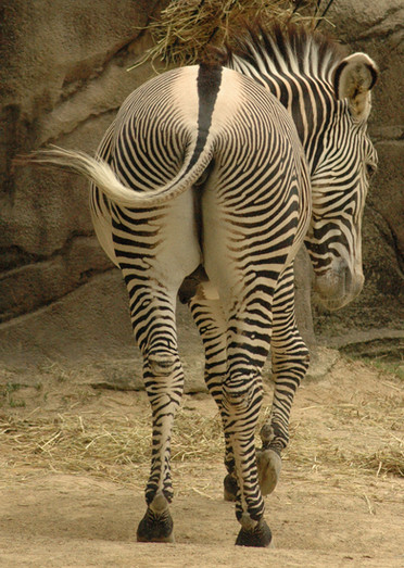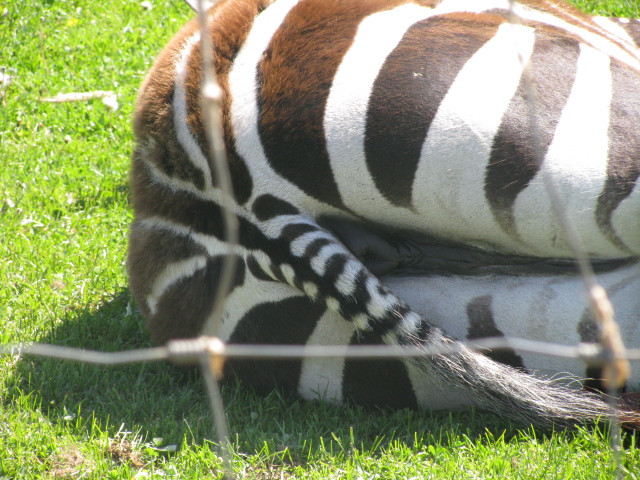 ... zebra butt! ...His name is Spot. They have a dalmation named Stripes. Taken at Express Ranch's Clydesdale Stables. This guy must feel like a goth kid in Abercrombie.