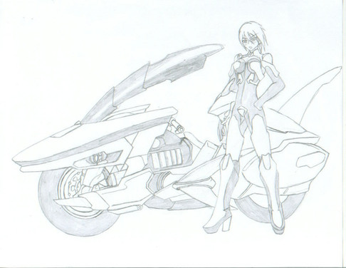 " Test Drive"Lucia test driving her mobile armament platform /M.A.P "Longinus". She took the bike for a ride during dawn along highway 101 that crosses the large lake surrounding M.A.G.A.Y.O.N island. Since Lucia is an android that is comparable to a full sized ANIMATON "Giant robot XD" in term of output and complexity, she still need external plugin equipment modules "EPEM" Longinus is specifically designed to carry these modules.