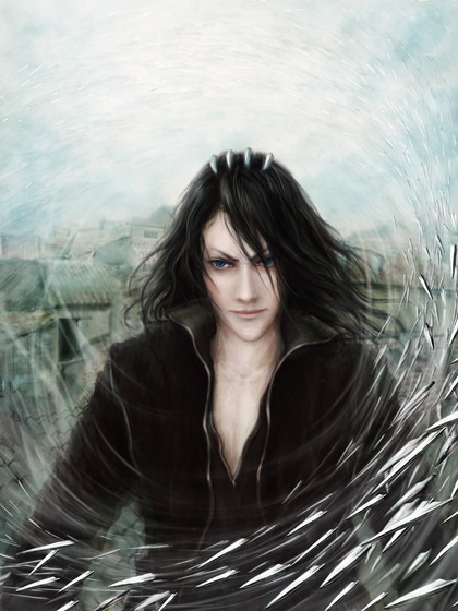 mata merah, rambut item, wajah dingin tapi cool ..