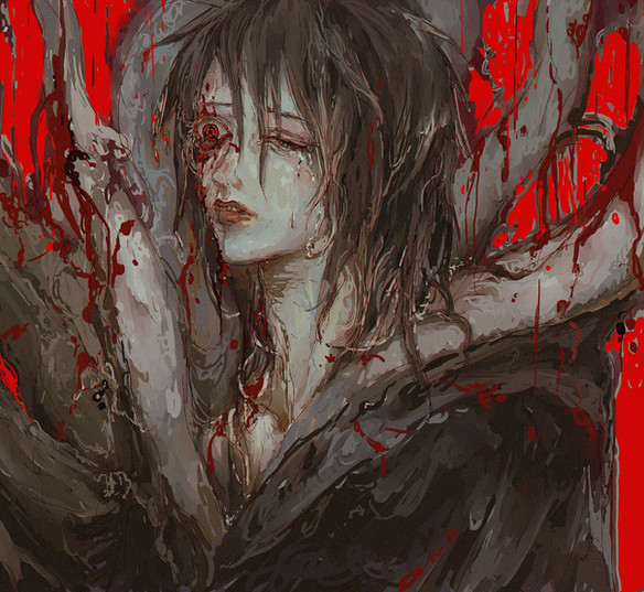 amazing 'O' did you do that all in photoshop? I love the bloody detail in the wings (loves red XD)