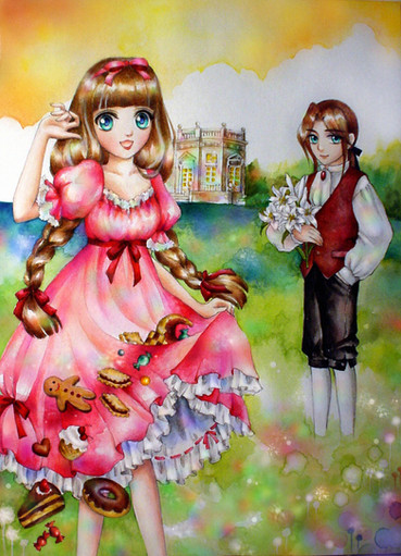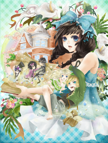 I adore the colors, and the girl's shiny green socks and outfits, as well as their hair styles! I really love how the dormouse is wearing red clothes complimented nicely with green (those eyes are beautiful), and how you drew him. He looks like such a sweetie here. This is deffinately one of my favorite works from you. I don't know what else to say *_* The CG is stunning, the characters are stunning, lighting and lineart is gorgeous~~~