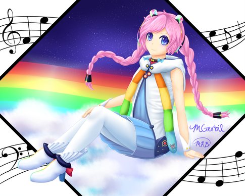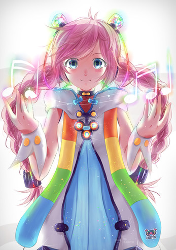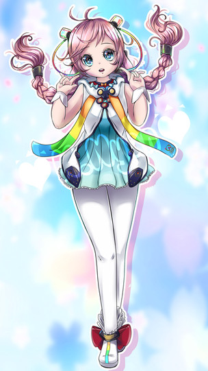 Rough fanart of Vocaloid Rana! Her poor sketch was abandoned for a long time. ><;"Her design is based on a rainbow. She has amps on her head that give off a rainbow light when she sings. It was revealed they chose the rainbow motif to represent producers' creative freedom when using Rana. The company described it as, “so you can color with the color that best represents you”.